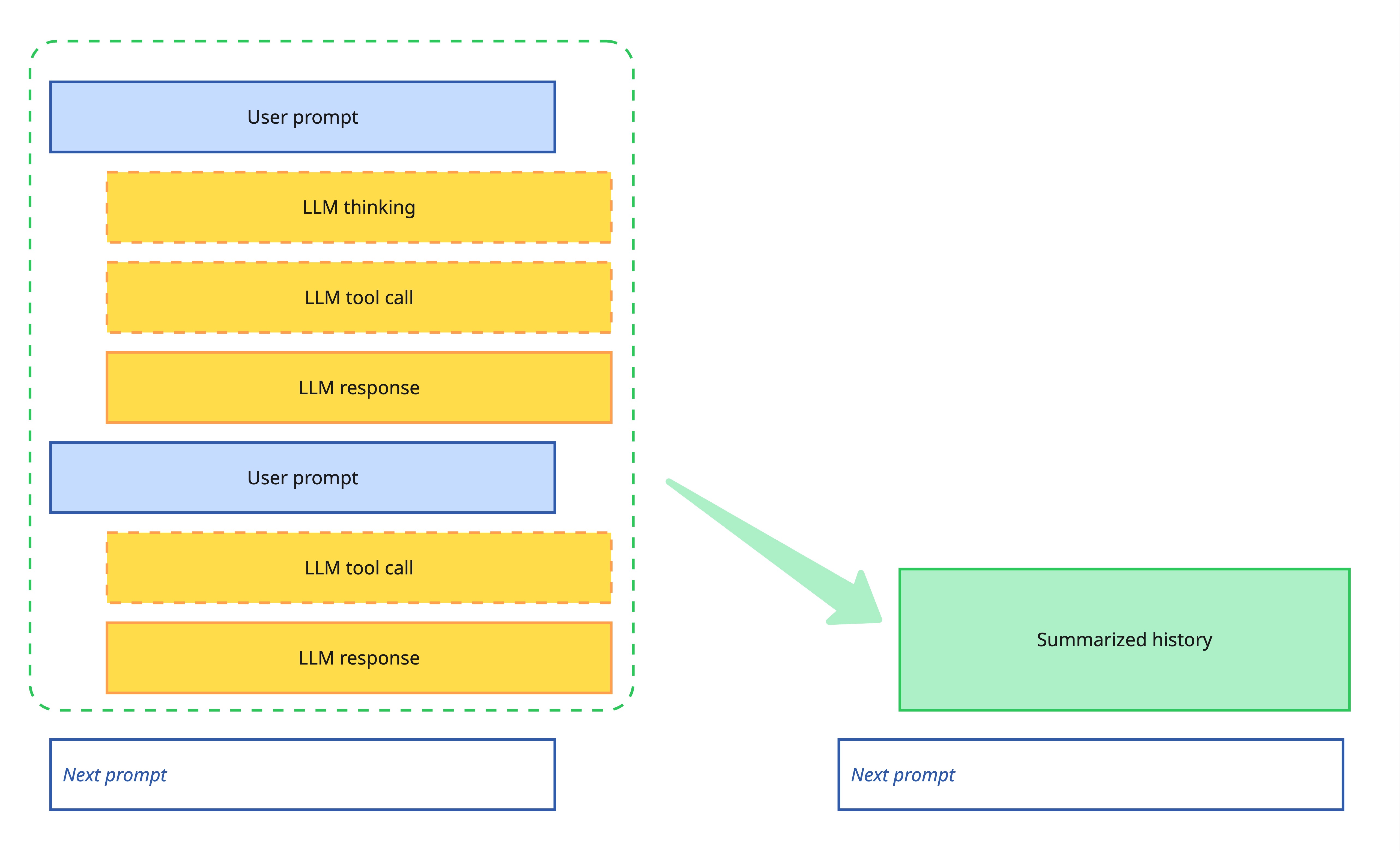 You can imagine that during a long, wide-ranging coding session the conversation history can easily accumulate a lot of cruft - distracting detail that’s no longer helpful.